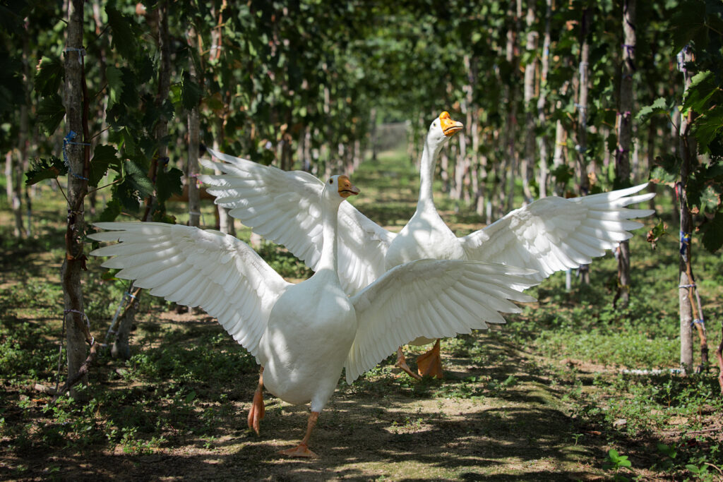 Det ekologiska Cono Sur från Chile har ett gäng med gäss som agerar som skadedjurskontrollanter, om man får kalla dem det. De har över 1 000 gäss som går fritt omkring mellan vinrankorna. Gässen äter gärna de skalbaggar som finns i vingården. Skalbaggarna livnär sig på bladen på vinrankan och bladen ser nästan ut som skelett när de farit fram. De här skalbaggarna följer ofta med i skörden och lever dessutom länge i miljön runt vinrankorna men med gässens hjälp blir de inte ett lika stort problem.
