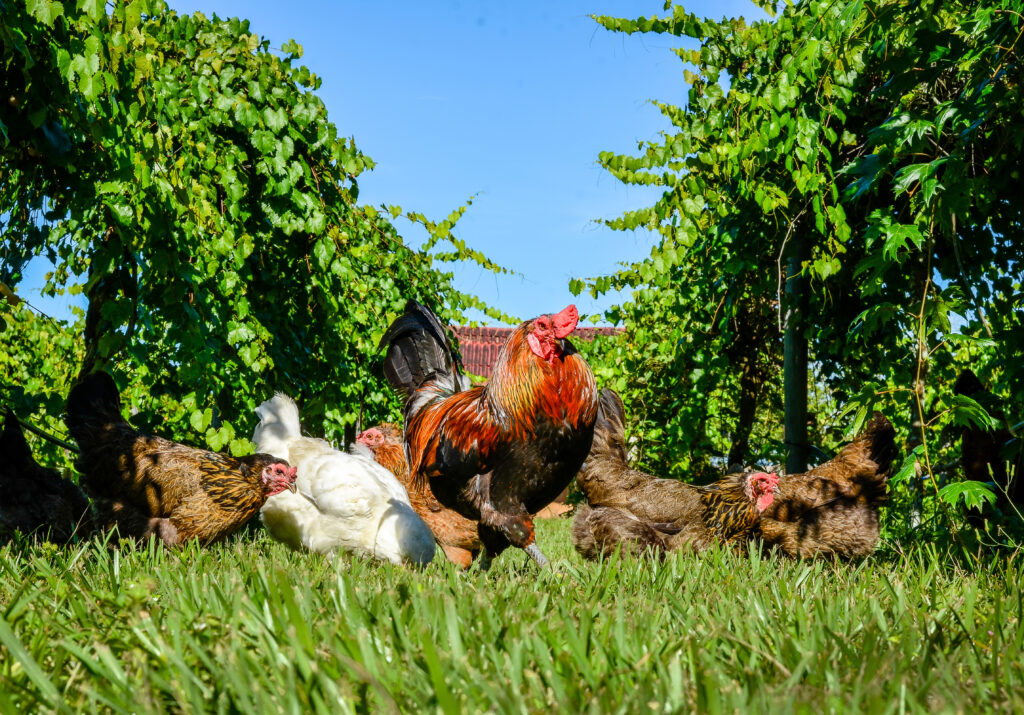 Emiliana i Chile har en armé av kycklingar och tuppar struttande i vingården. De slukar flera insekter som är skadliga för vinrankan men framförallt en vivel som äter på vinrankans rötter och skott.